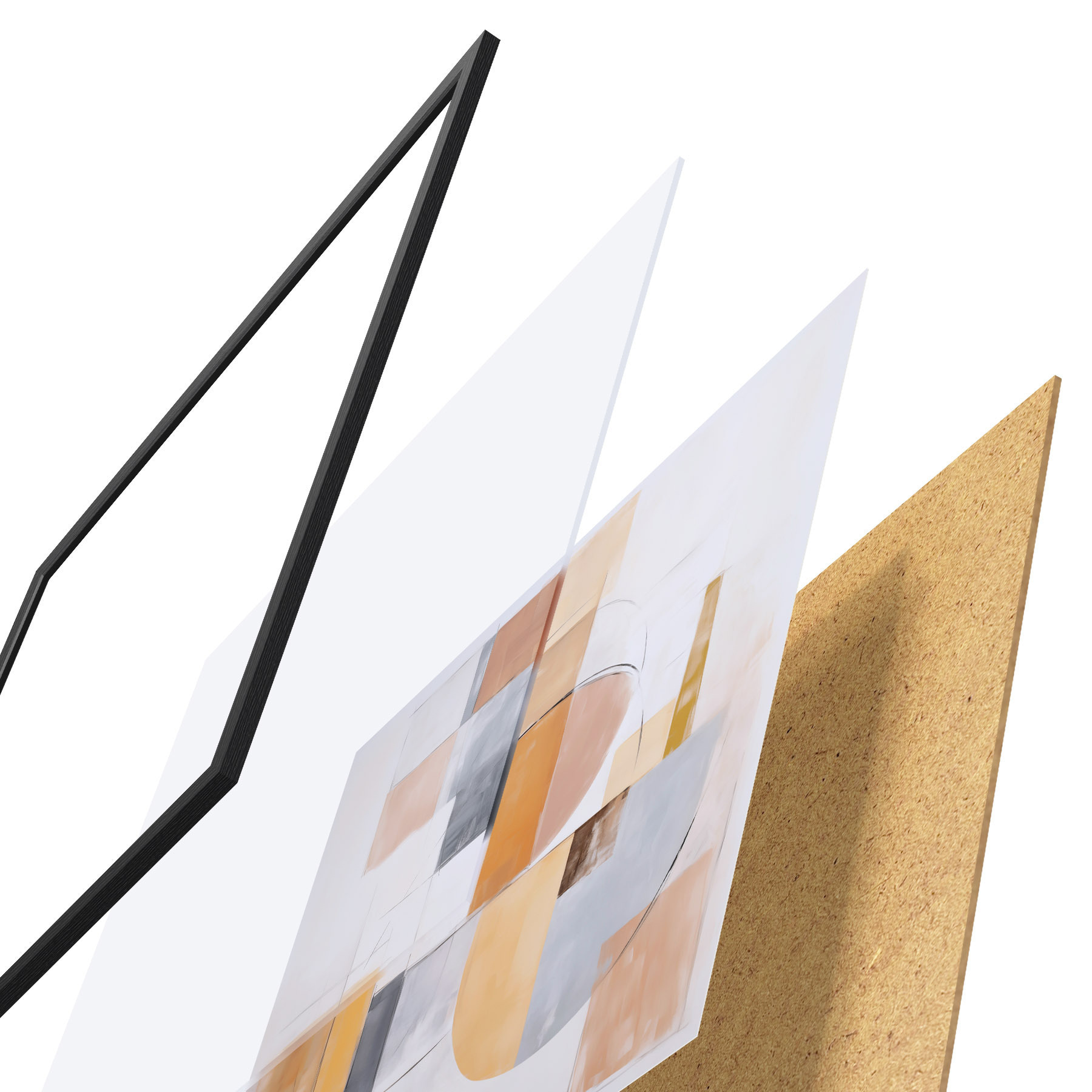 Le poster se compose d'un cadre, d'un plexiglas, d'une image imprimée et d'un support en aggloméré. Le poster peut être immédiatement accroché au mur grâce aux fixations au dos.