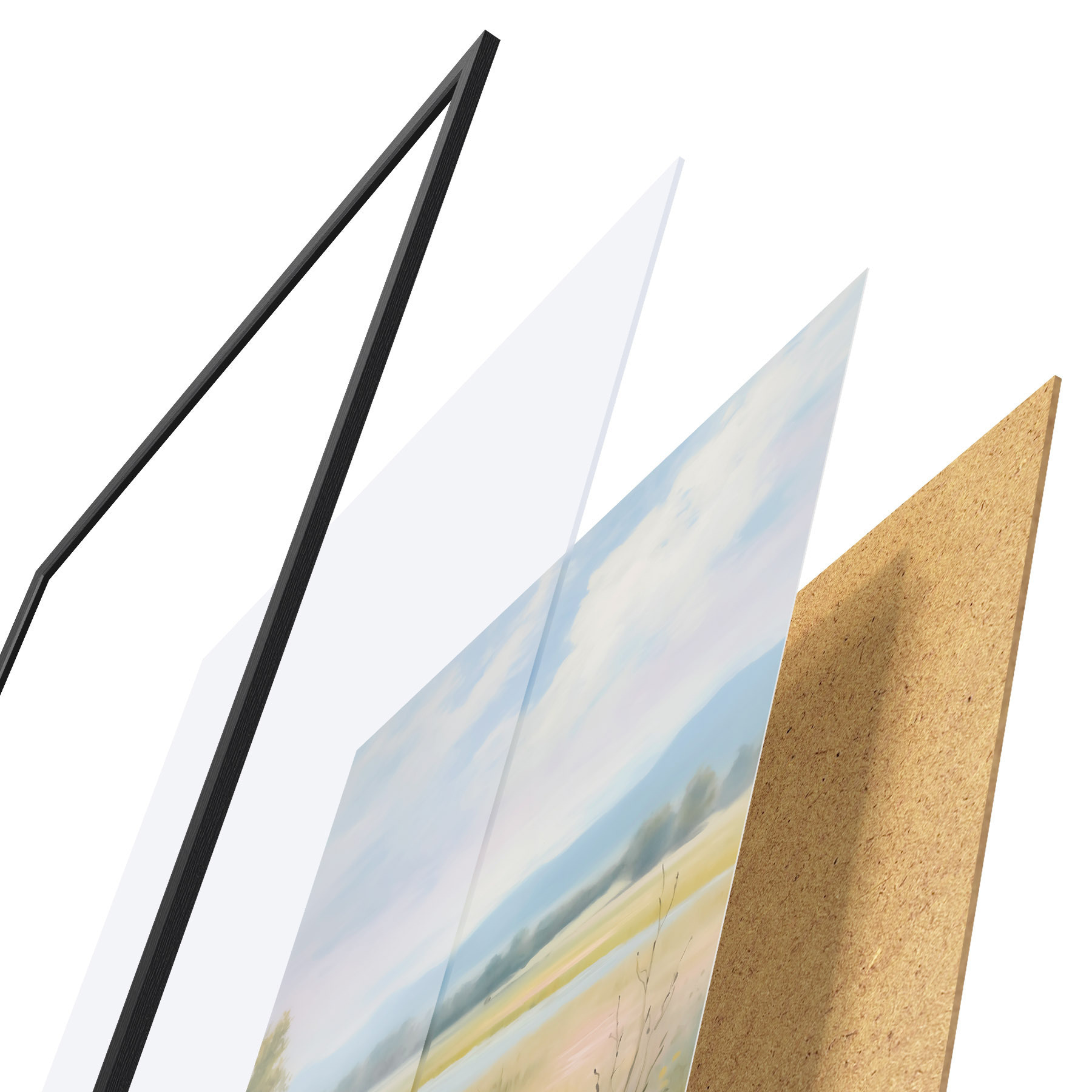 Le poster se compose d'un cadre, d'un plexiglas, d'une image imprimée et d'un support en aggloméré. Le poster peut être immédiatement accroché au mur grâce aux fixations au dos.