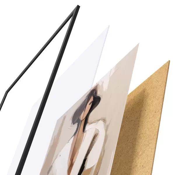 Le poster se compose d'un cadre, d'un plexiglas, d'une image imprimée et d'un support en aggloméré. Le poster peut être immédiatement accroché au mur grâce aux fixations au dos.