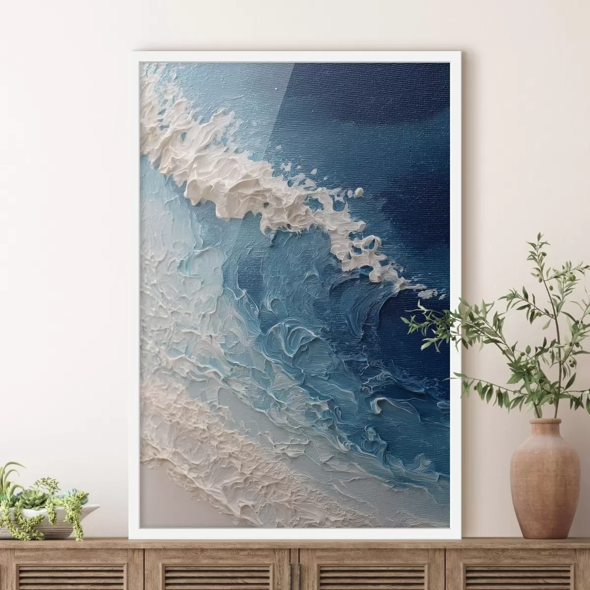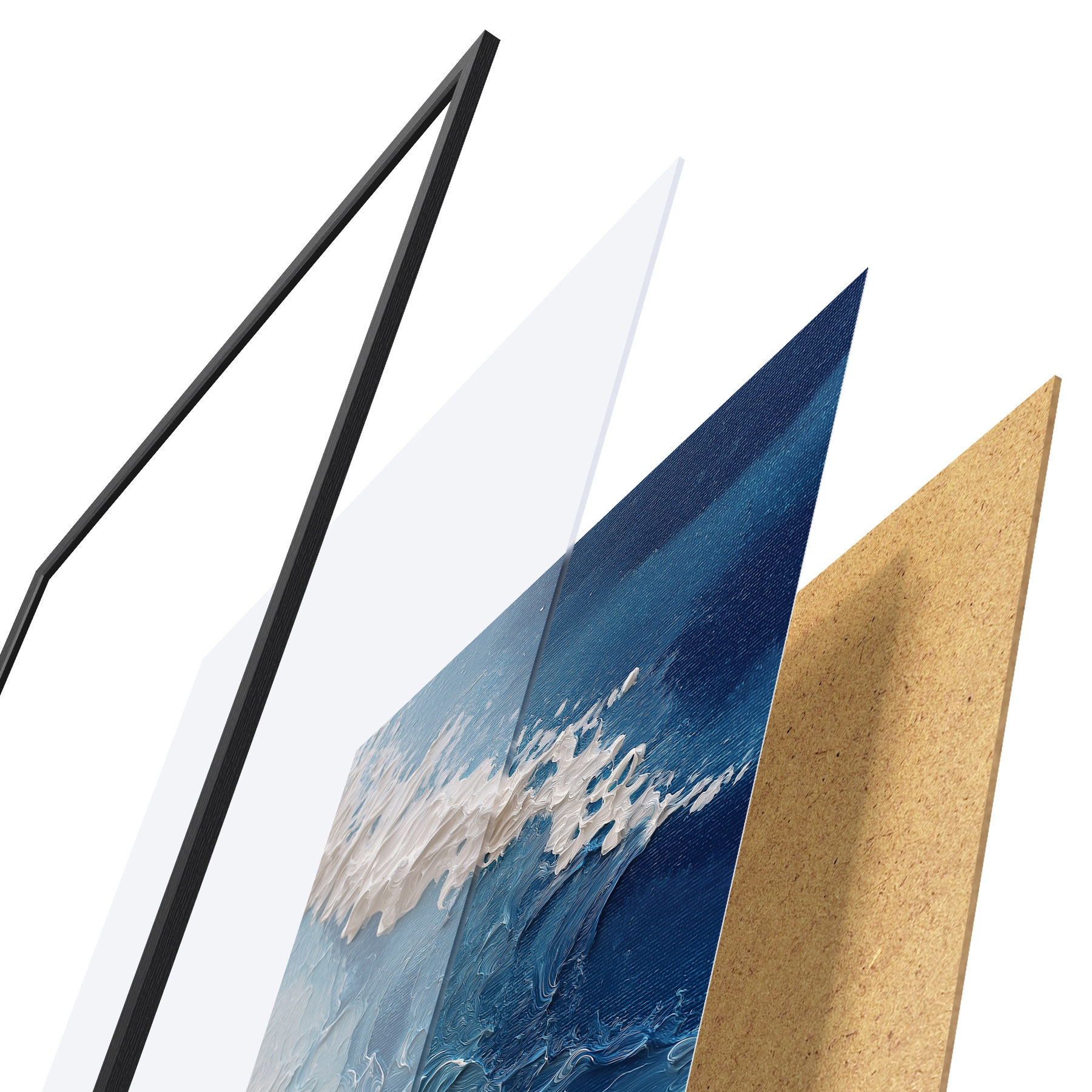 Le poster se compose d'un cadre, d'un plexiglas, d'une image imprimée et d'un support en aggloméré. Le poster peut être immédiatement accroché au mur grâce aux fixations au dos.