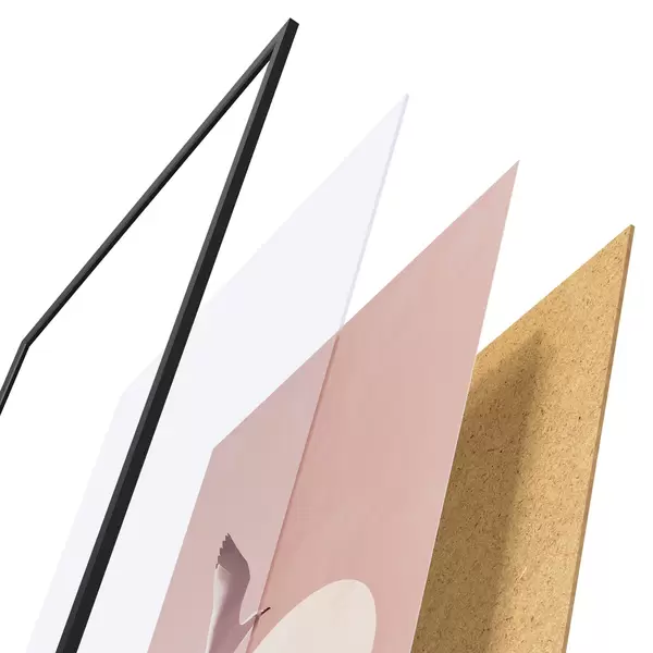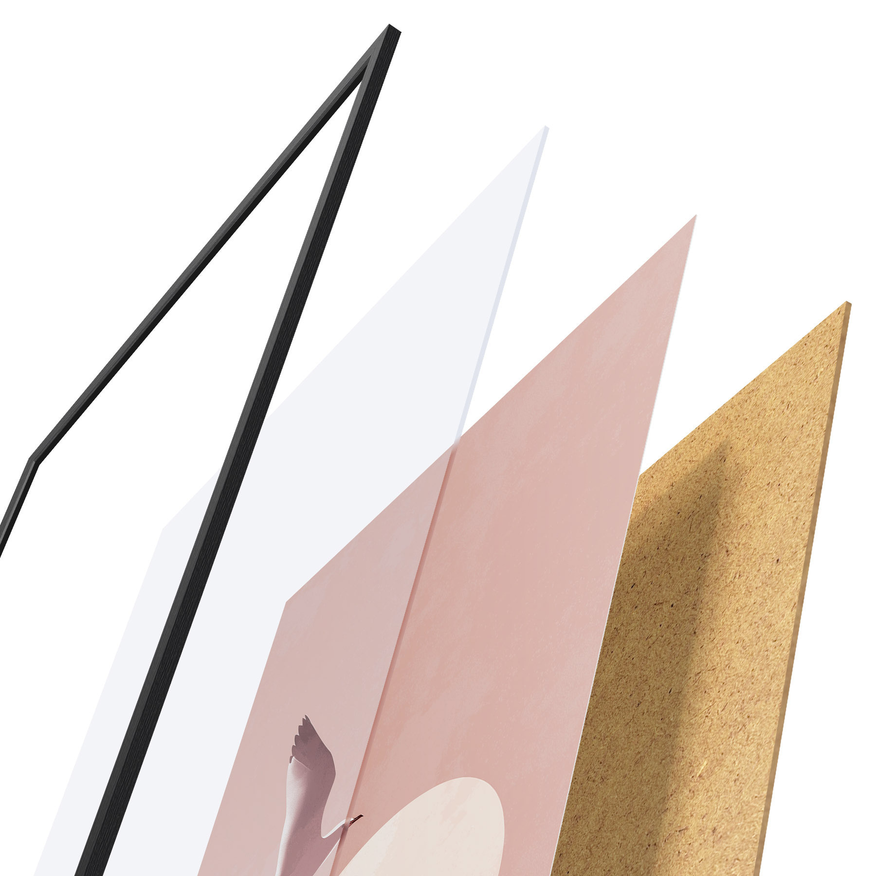 Le poster se compose d'un cadre, d'un plexiglas, d'une image imprimée et d'un support en aggloméré. Le poster peut être immédiatement accroché au mur grâce aux fixations au dos.