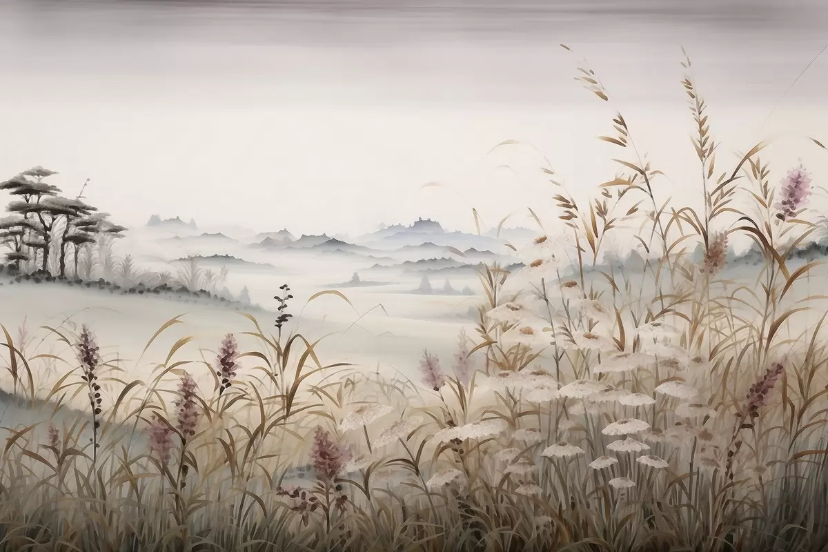 Affiche Paysage brumeux avec des herbes Non f48481