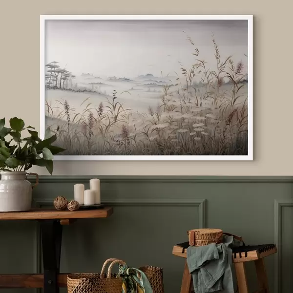Affiche Paysage brumeux avec des herbes f48481