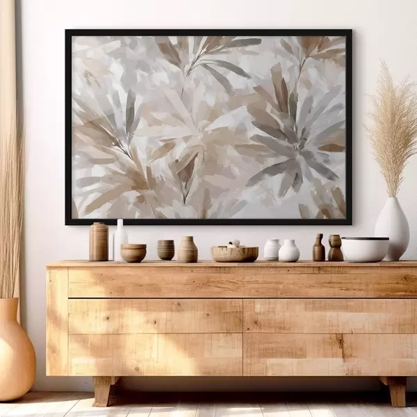 Affiche Fleurs abstraites beiges, œuvre d'art texturée Non f48483