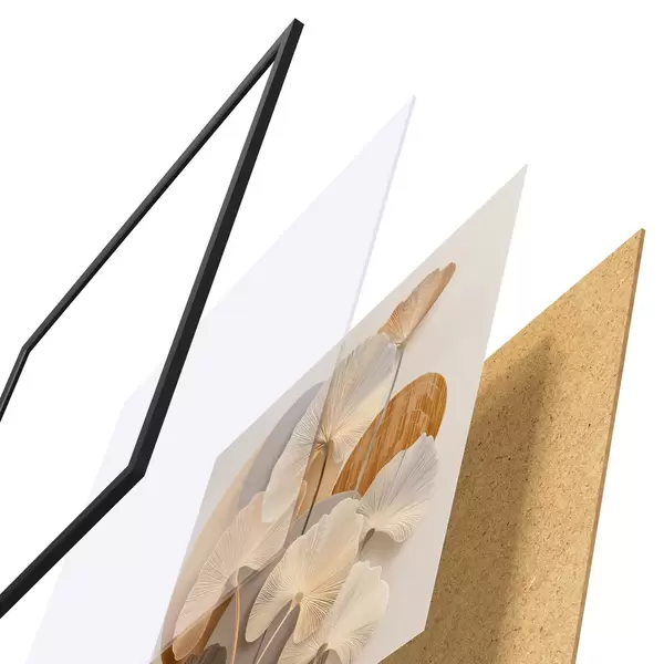 Le poster se compose d'un cadre, d'un plexiglas, d'une image imprimée et d'un support en aggloméré. Le poster peut être immédiatement accroché au mur grâce aux fixations au dos.