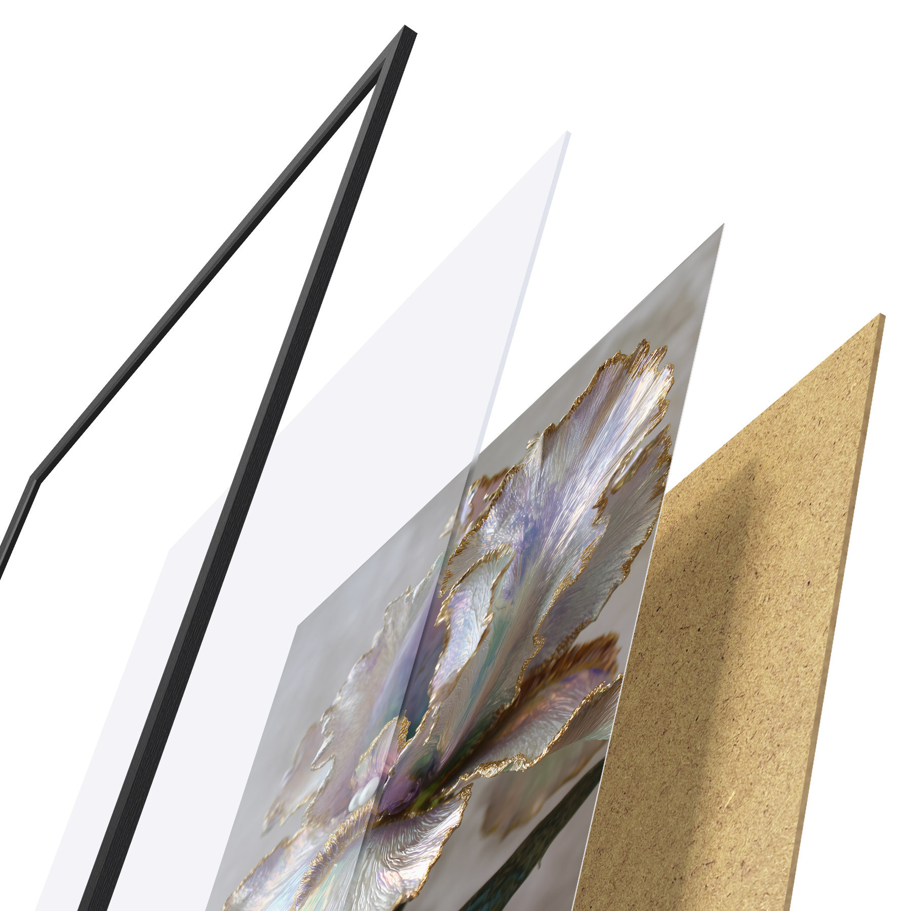 Le poster se compose d'un cadre, d'un plexiglas, d'une image imprimée et d'un support en aggloméré. Le poster peut être immédiatement accroché au mur grâce aux fixations au dos.