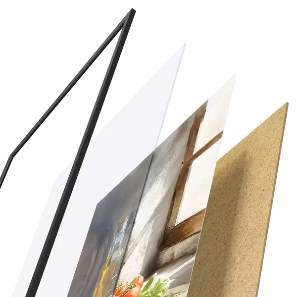 Le poster se compose d'un cadre, d'un plexiglas, d'une image imprimée et d'un support en aggloméré. Le poster peut être immédiatement accroché au mur grâce aux fixations au dos.