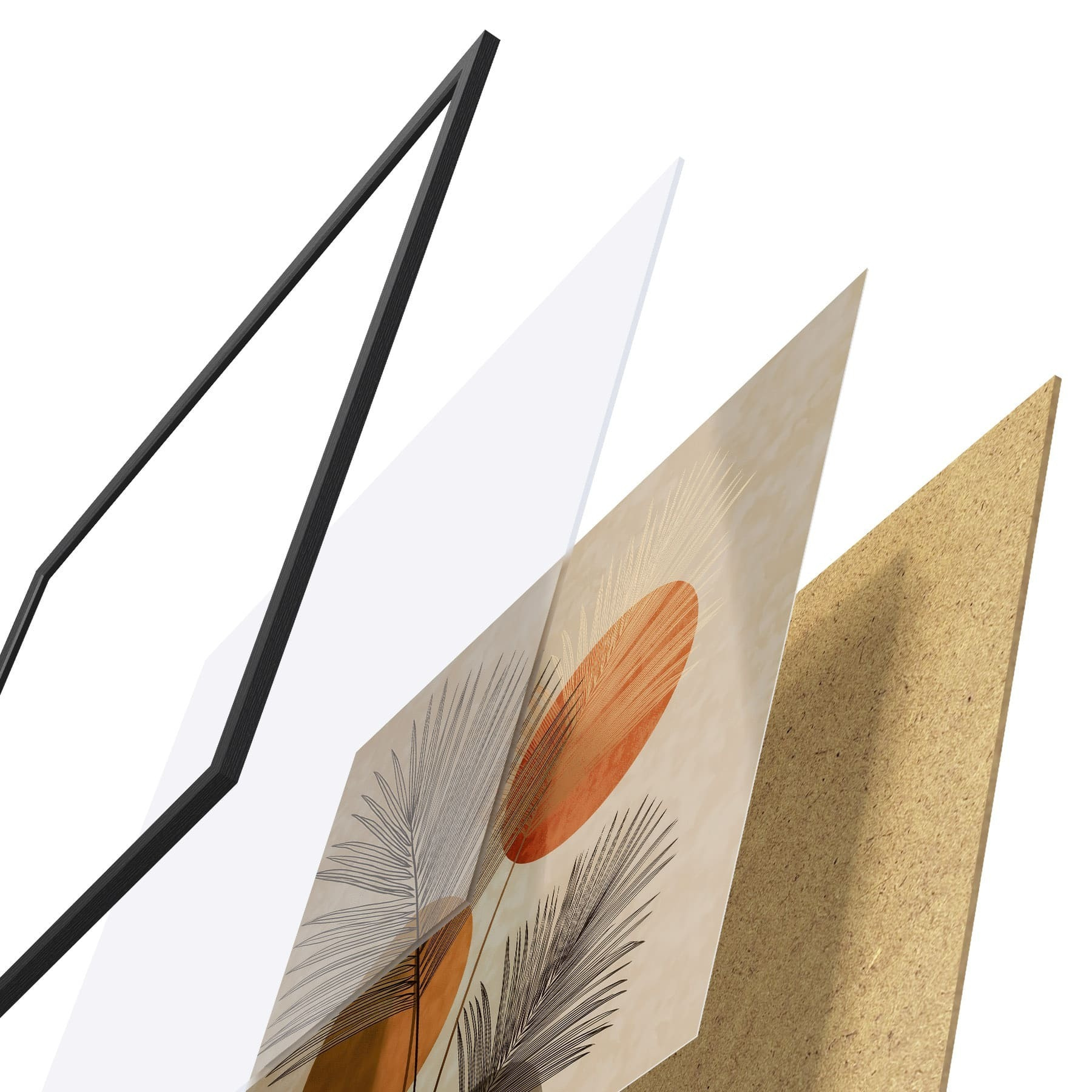 Le poster se compose d'un cadre, d'un plexiglas, d'une image imprimée et d'un support en aggloméré. Le poster peut être immédiatement accroché au mur grâce aux fixations au dos.
