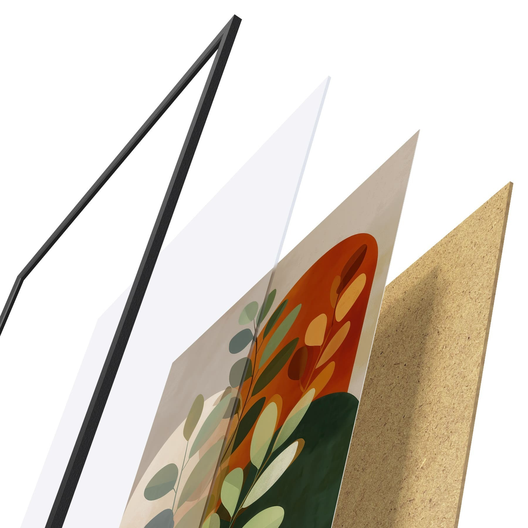 Le poster se compose d'un cadre, d'un plexiglas, d'une image imprimée et d'un support en aggloméré. Le poster peut être immédiatement accroché au mur grâce aux fixations au dos.