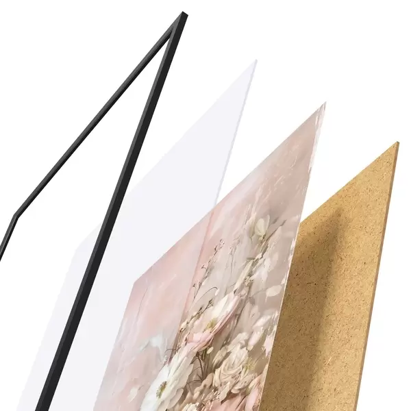 Le poster se compose d'un cadre, d'un plexiglas, d'une image imprimée et d'un support en aggloméré. Le poster peut être immédiatement accroché au mur grâce aux fixations au dos.