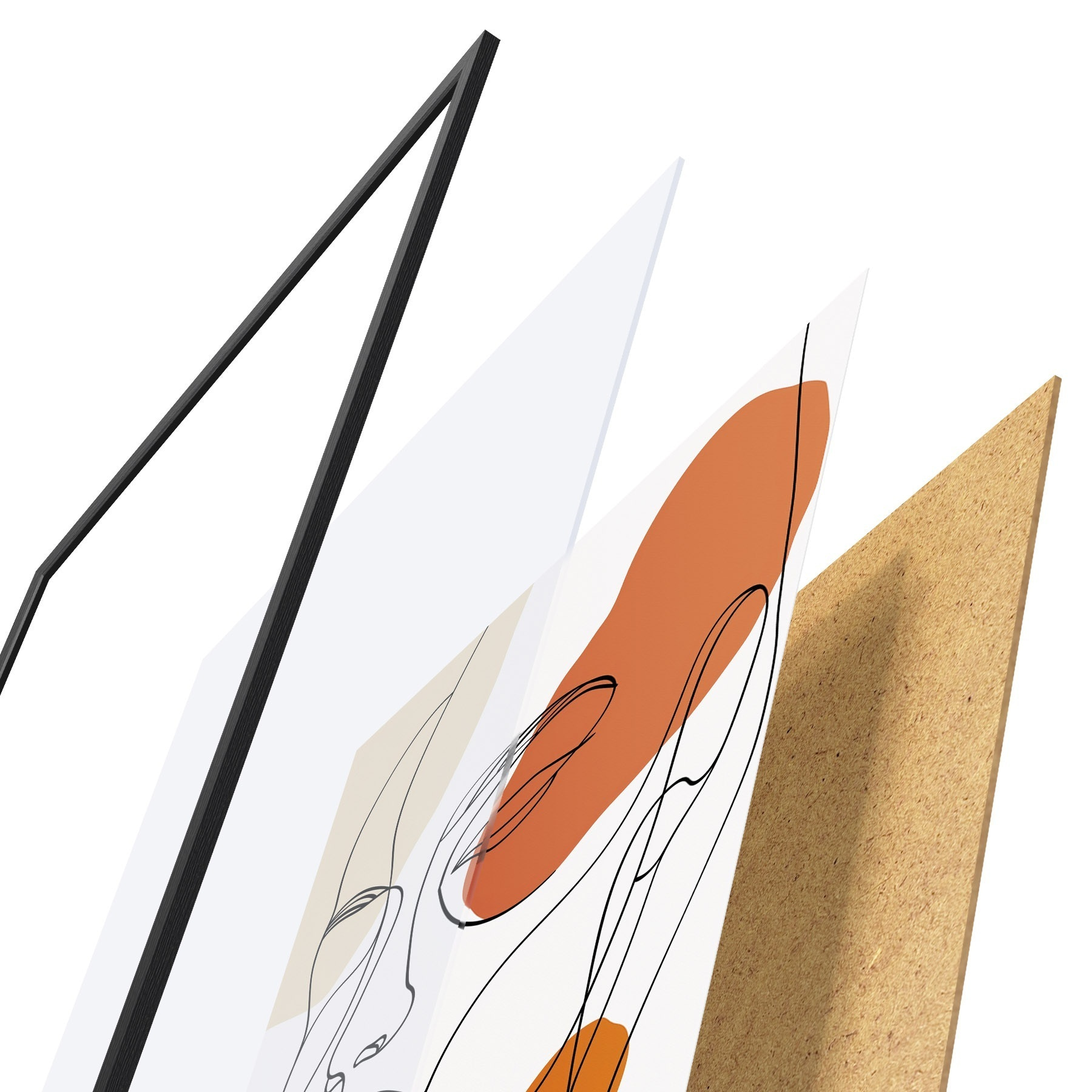 Le poster se compose d'un cadre, d'un plexiglas, d'une image imprimée et d'un support en aggloméré. Le poster peut être immédiatement accroché au mur grâce aux fixations au dos.
