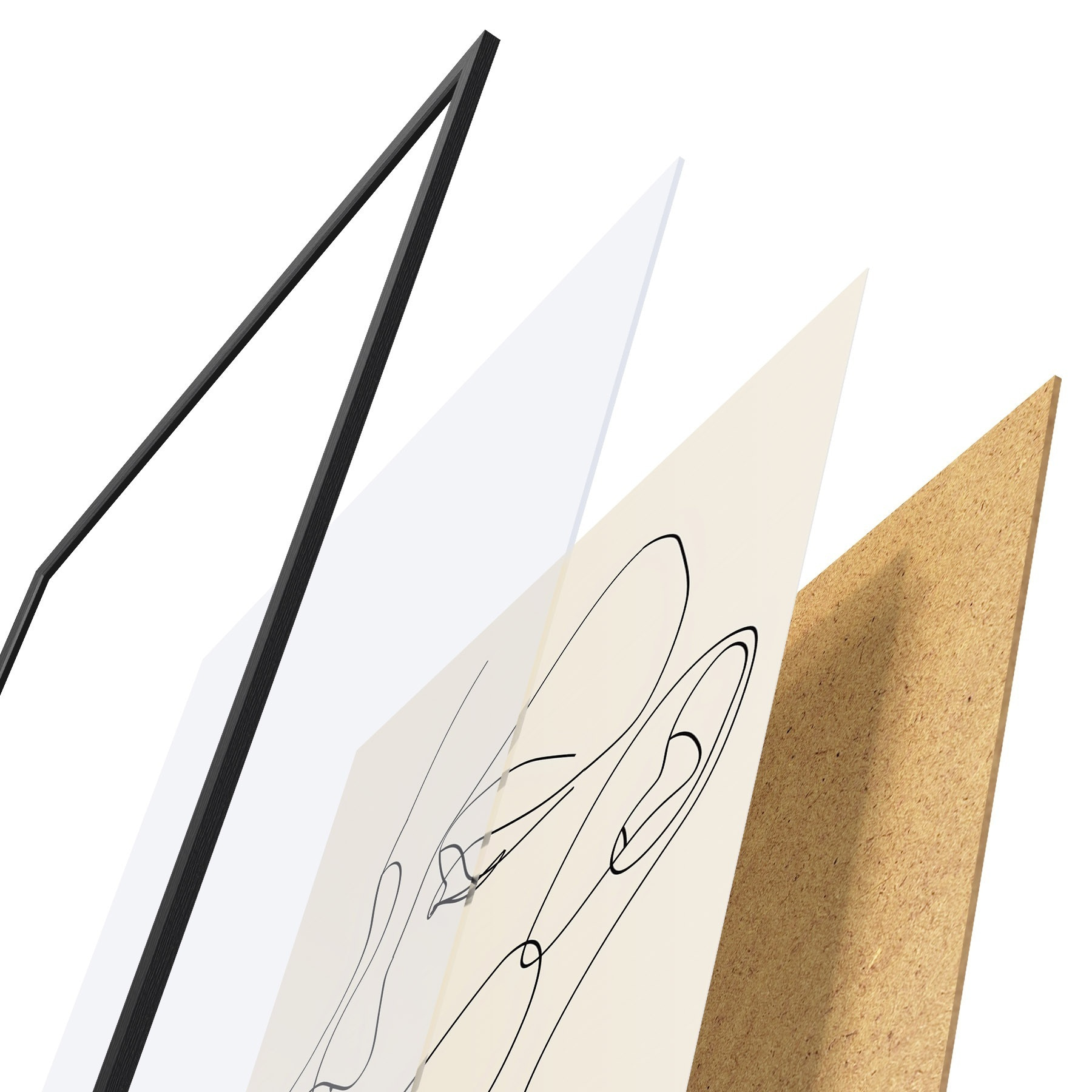 Le poster se compose d'un cadre, d'un plexiglas, d'une image imprimée et d'un support en aggloméré. Le poster peut être immédiatement accroché au mur grâce aux fixations au dos.