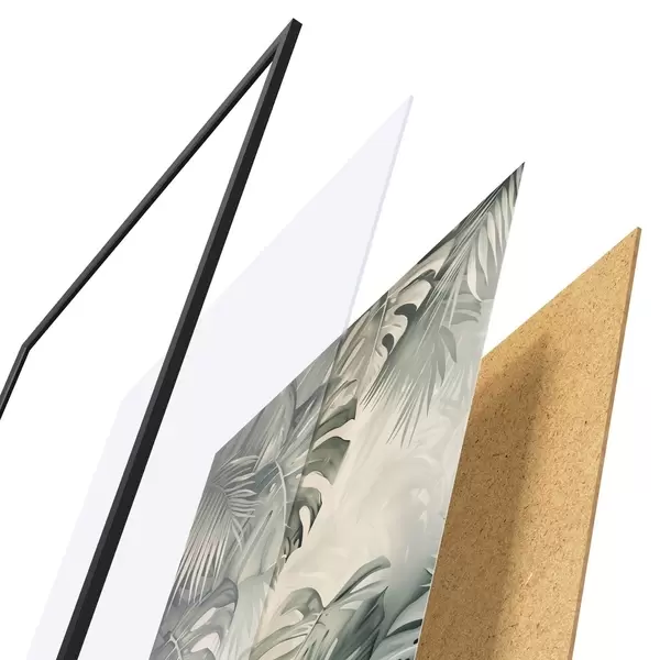 Le poster se compose d'un cadre, d'un plexiglas, d'une image imprimée et d'un support en aggloméré. Le poster peut être immédiatement accroché au mur grâce aux fixations au dos.