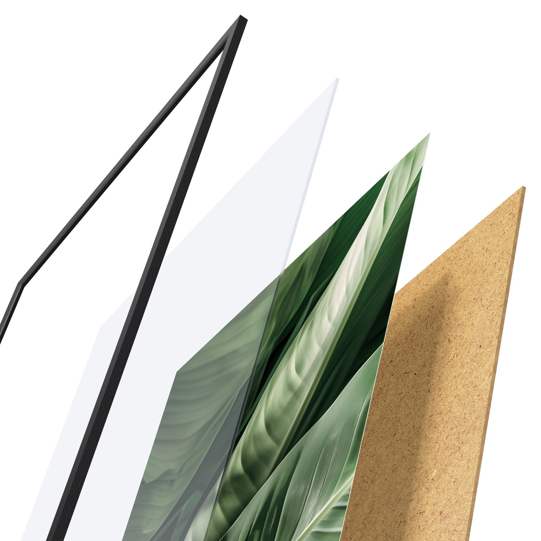 Le poster se compose d'un cadre, d'un plexiglas, d'une image imprimée et d'un support en aggloméré. Le poster peut être immédiatement accroché au mur grâce aux fixations au dos.