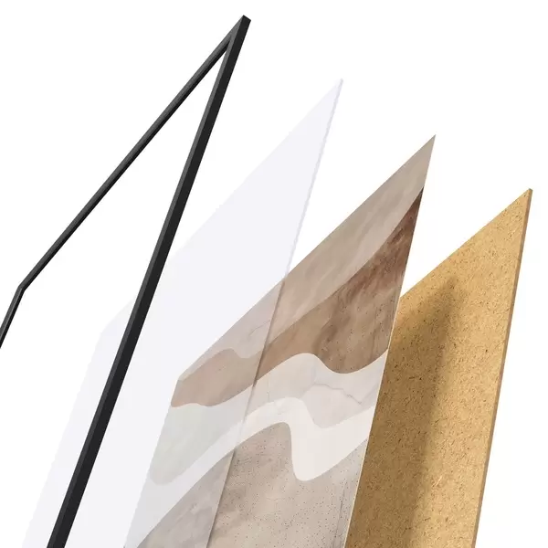 Le poster se compose d'un cadre, d'un plexiglas, d'une image imprimée et d'un support en aggloméré. Le poster peut être immédiatement accroché au mur grâce aux fixations au dos.