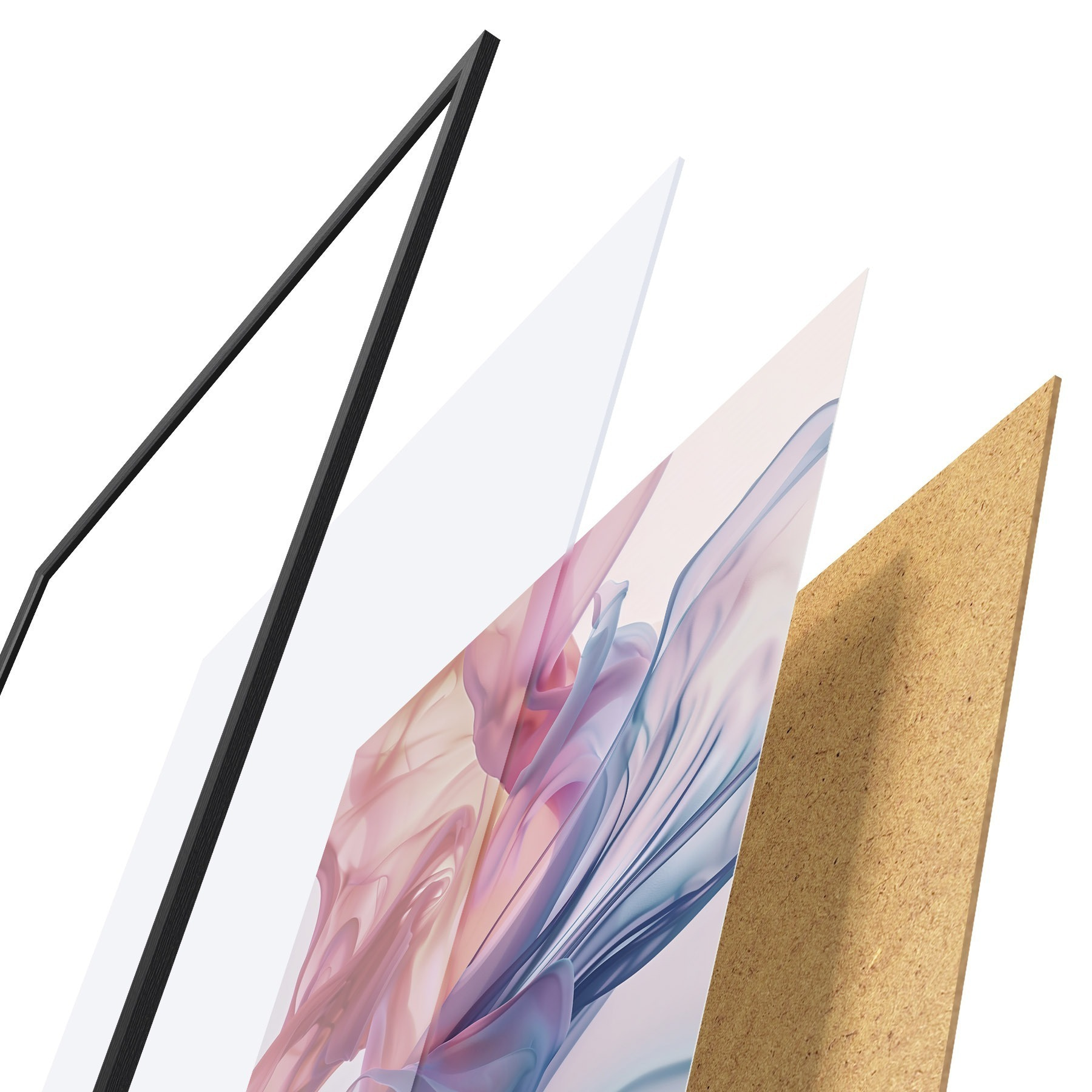 Le poster se compose d'un cadre, d'un plexiglas, d'une image imprimée et d'un support en aggloméré. Le poster peut être immédiatement accroché au mur grâce aux fixations au dos.