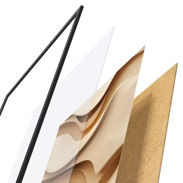 Le poster se compose d'un cadre, d'un plexiglas, d'une image imprimée et d'un support en aggloméré. Le poster peut être immédiatement accroché au mur grâce aux fixations au dos.