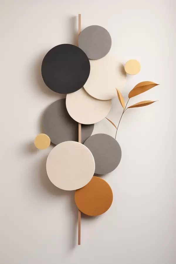 Affiche Cercles abstraits avec des feuilles dans des tons neutres Non f48602