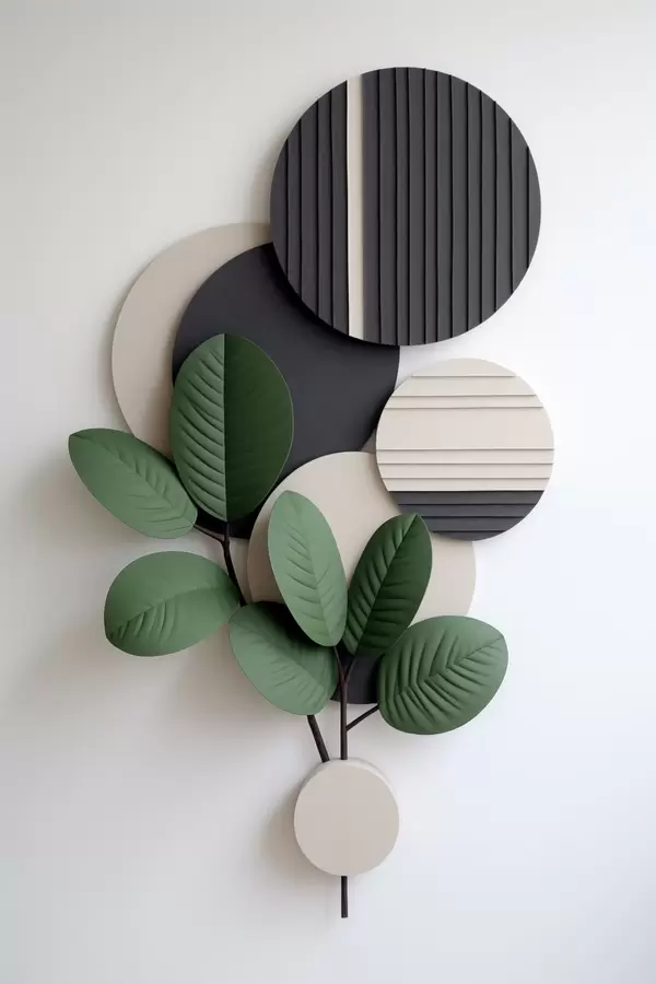 Affiche Feuilles vertes avec des éléments ronds en relief Non f48603