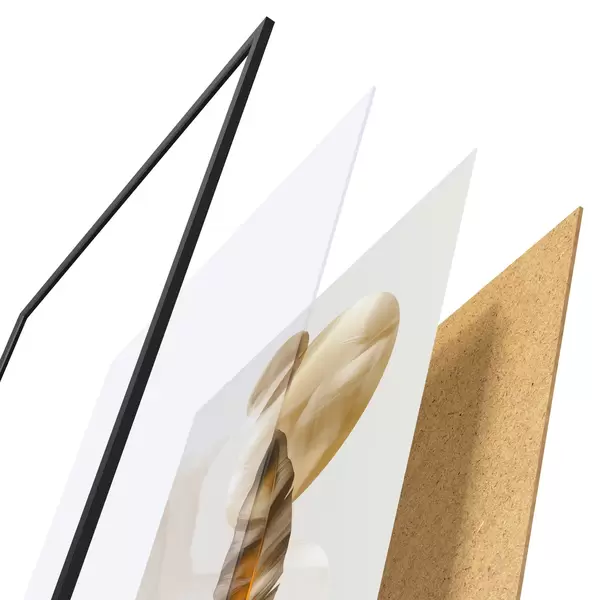 Le poster se compose d'un cadre, d'un plexiglas, d'une image imprimée et d'un support en aggloméré. Le poster peut être immédiatement accroché au mur grâce aux fixations au dos.