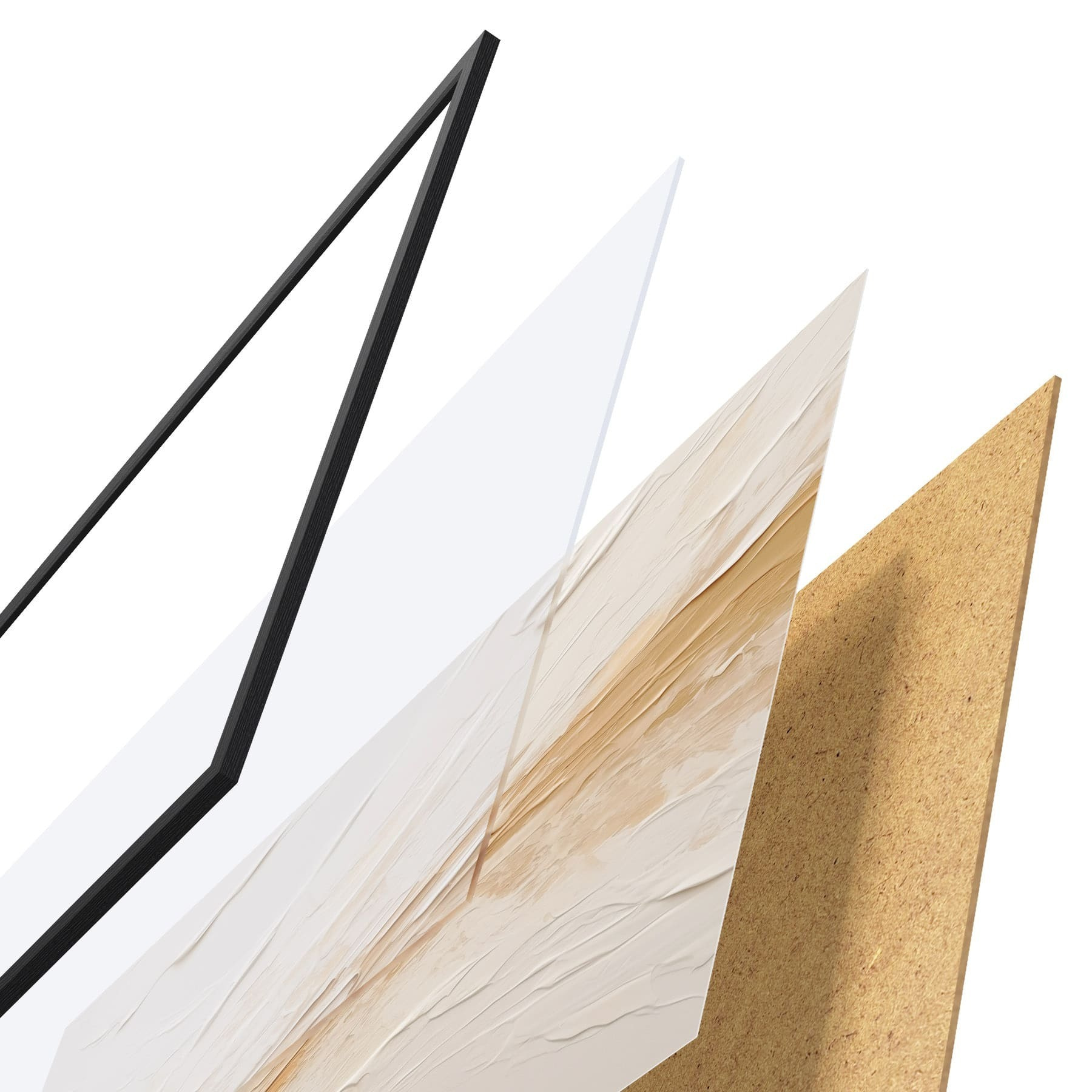 Le poster se compose d'un cadre, d'un plexiglas, d'une image imprimée et d'un support en aggloméré. Le poster peut être immédiatement accroché au mur grâce aux fixations au dos.