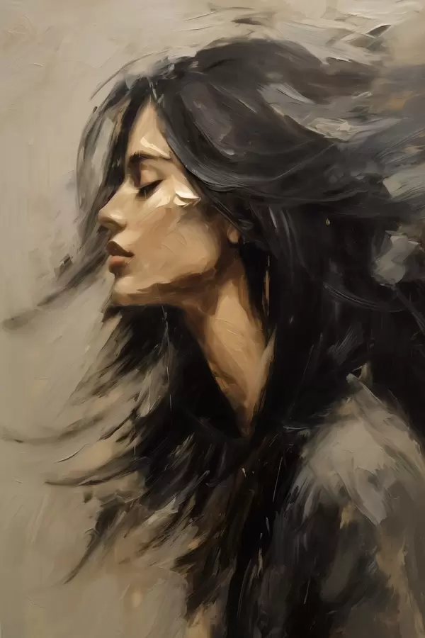 Affiche Portrait d'une femme aux cheveux flottants, dans un style pictural f48622