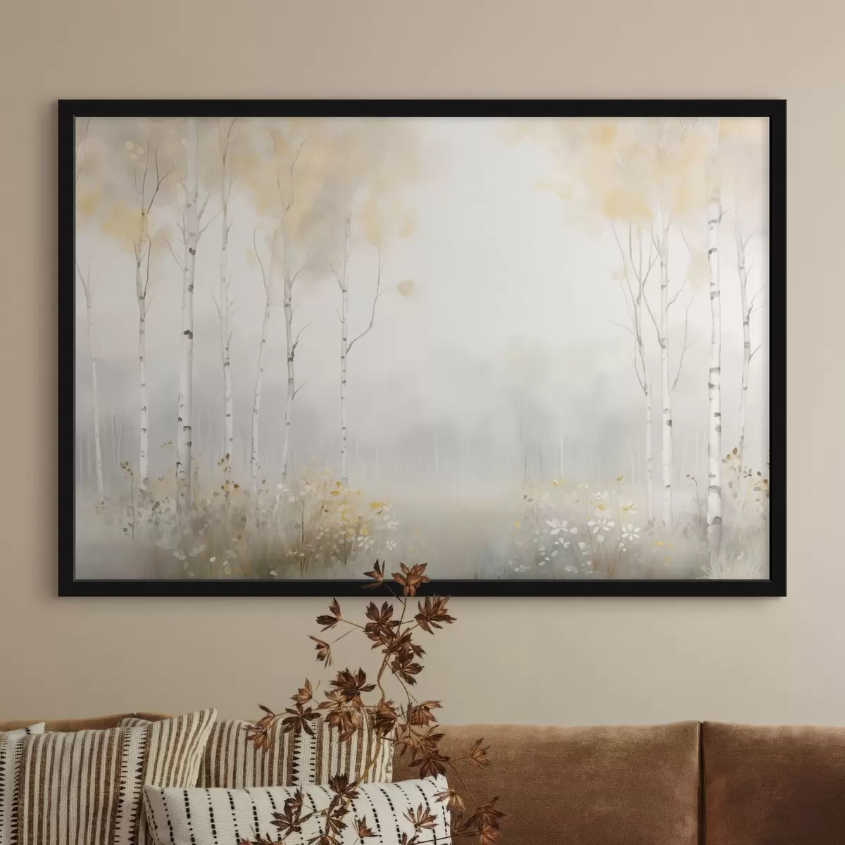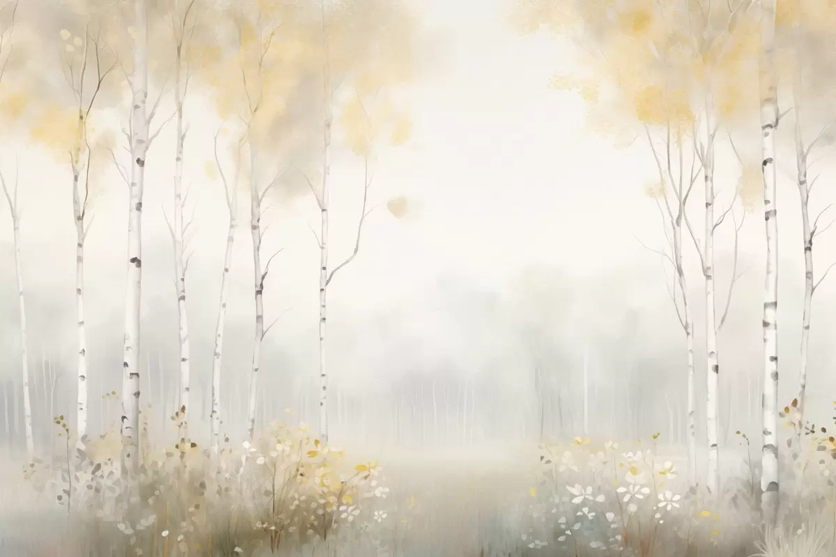 Affiche Une forêt d'arbres élancés dans la brume, dans des tons clairs et doux Non f48623