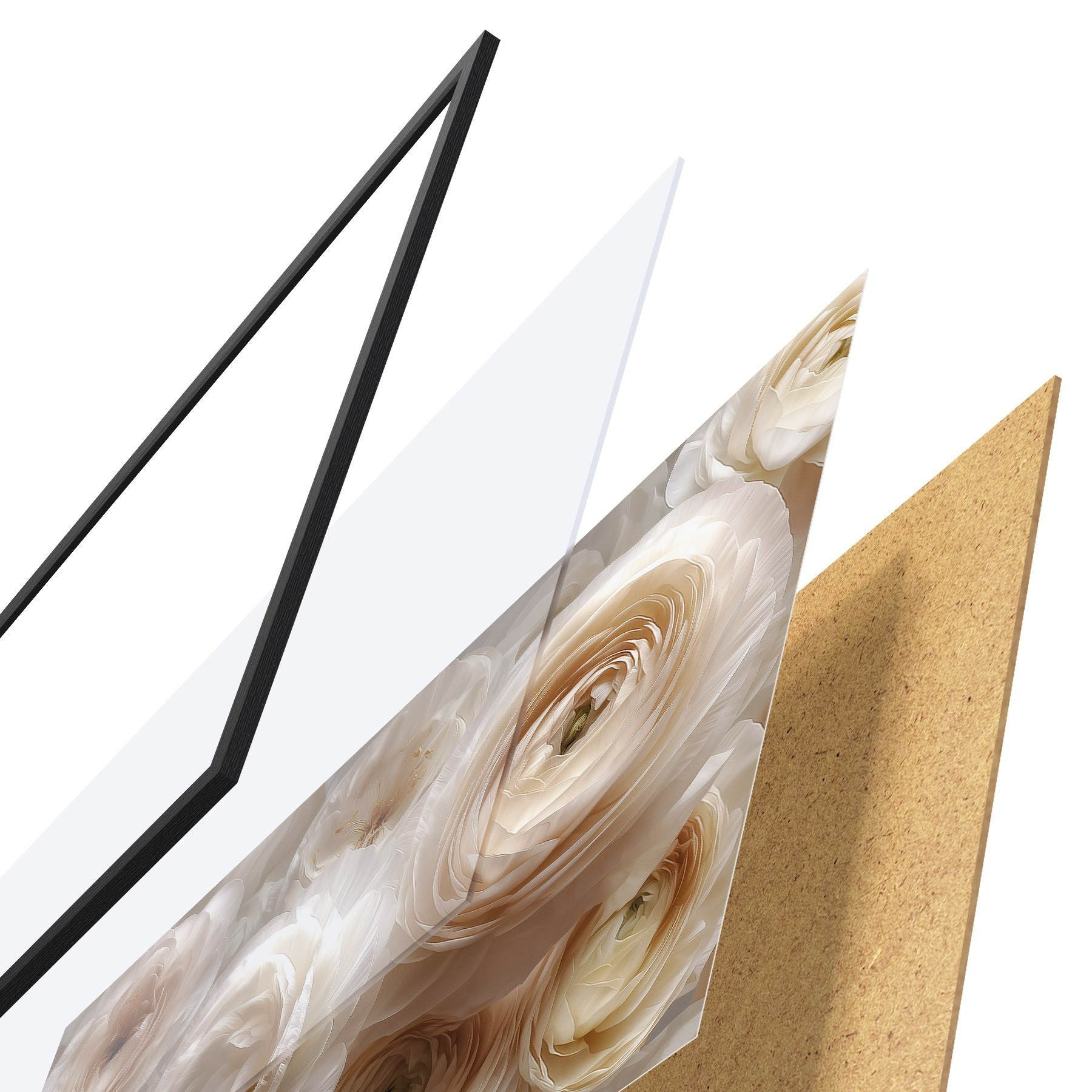 Le poster se compose d'un cadre, d'un plexiglas, d'une image imprimée et d'un support en aggloméré. Le poster peut être immédiatement accroché au mur grâce aux fixations au dos.