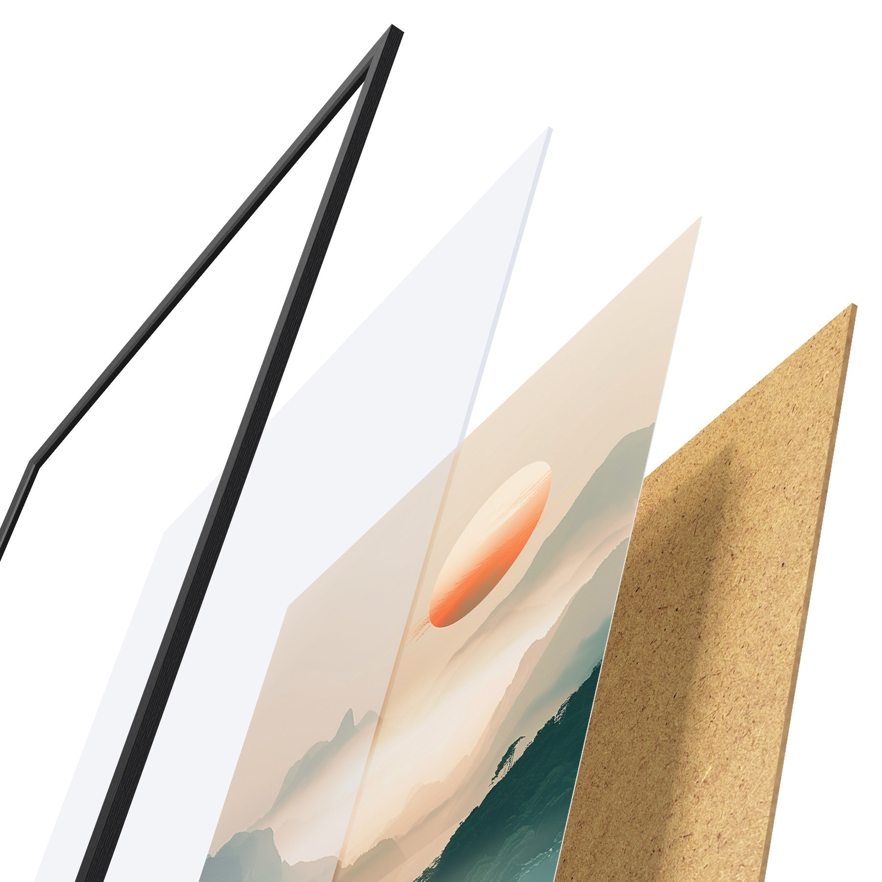 Le poster se compose d'un cadre, d'un plexiglas, d'une image imprimée et d'un support en aggloméré. Le poster peut être immédiatement accroché au mur grâce aux fixations au dos.