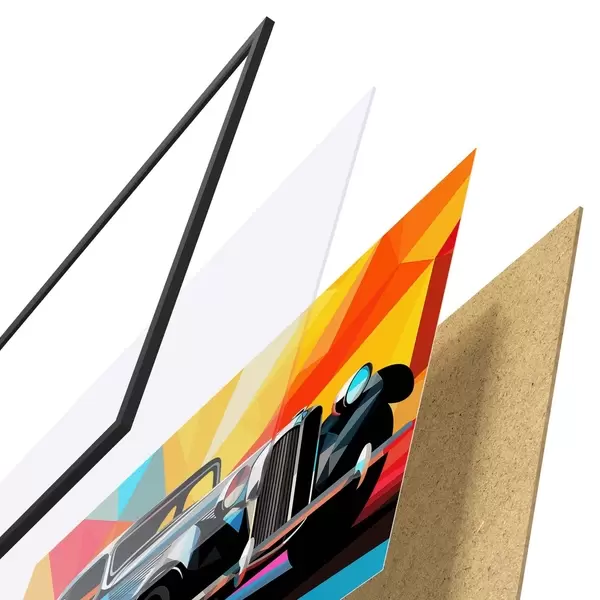Le poster se compose d'un cadre, d'un plexiglas, d'une image imprimée et d'un support en aggloméré. Le poster peut être immédiatement accroché au mur grâce aux fixations au dos.