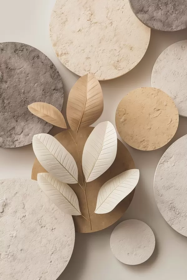 Affiche Une composition avec des feuilles et des cercles Non f48691