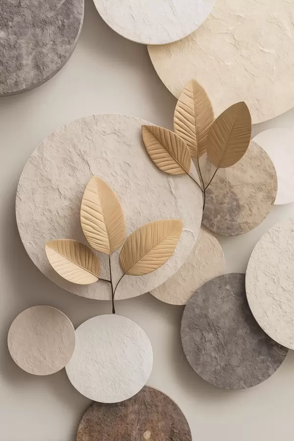 Affiche Une composition avec des feuilles et des cercles Non f48692