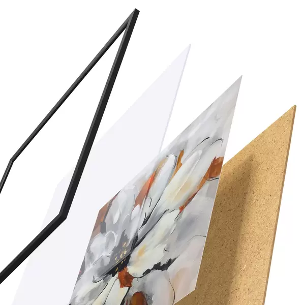 Le poster se compose d'un cadre, d'un plexiglas, d'une image imprimée et d'un support en aggloméré. Le poster peut être immédiatement accroché au mur grâce aux fixations au dos.