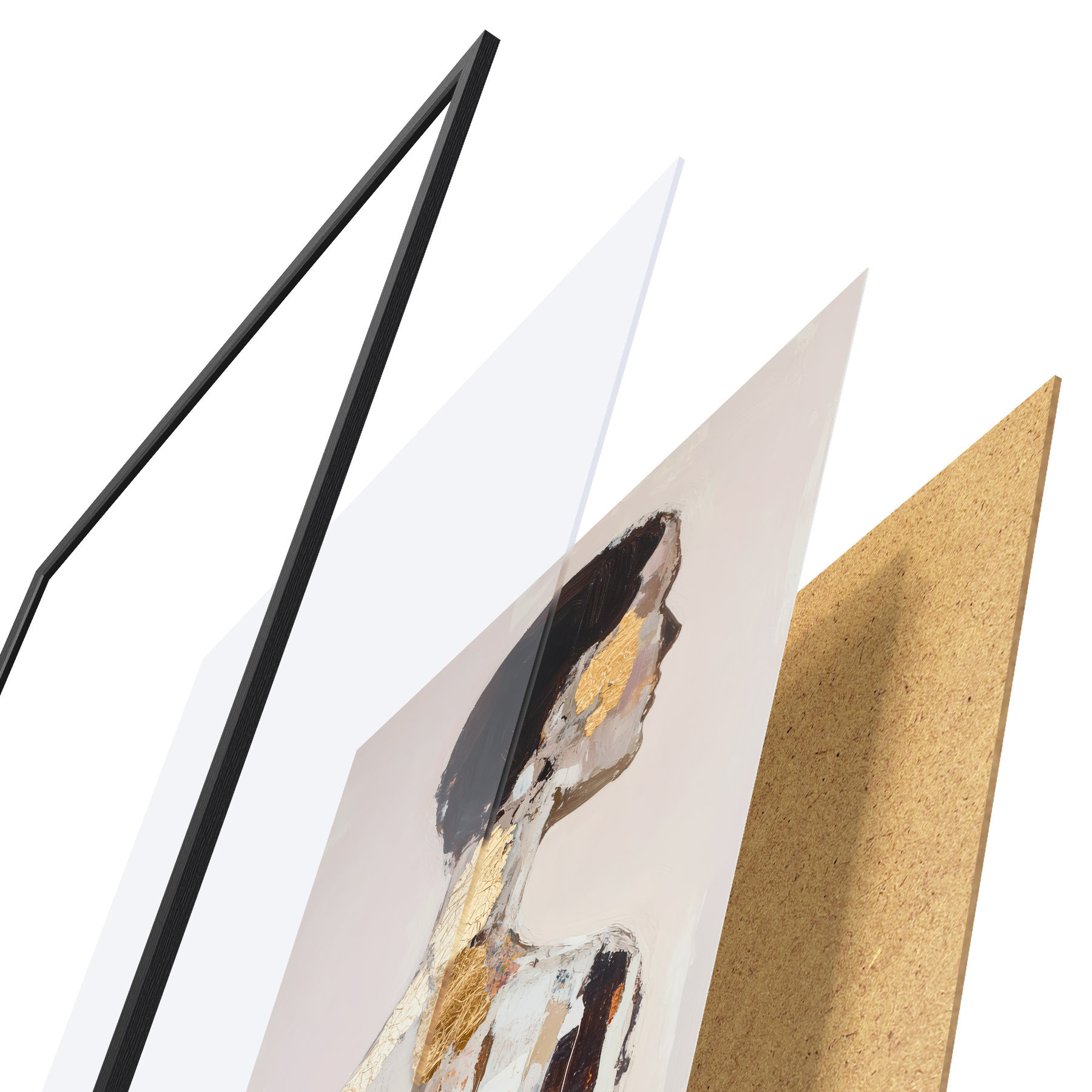 Le poster se compose d'un cadre, d'un plexiglas, d'une image imprimée et d'un support en aggloméré. Le poster peut être immédiatement accroché au mur grâce aux fixations au dos.