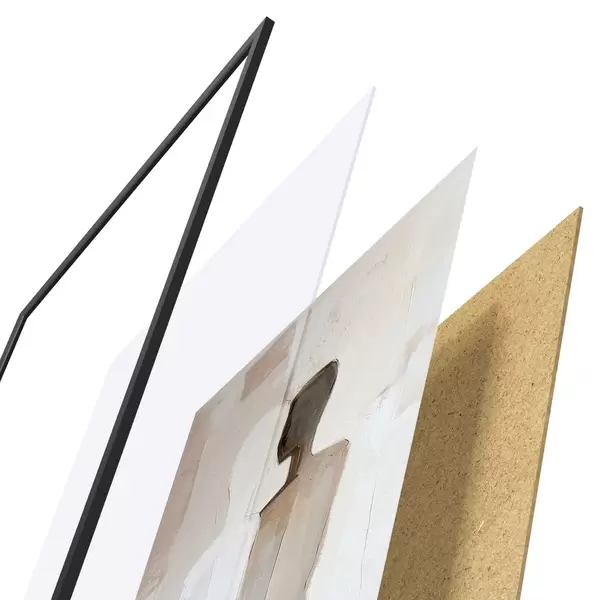 Le poster se compose d'un cadre, d'un plexiglas, d'une image imprimée et d'un support en aggloméré. Le poster peut être immédiatement accroché au mur grâce aux fixations au dos.