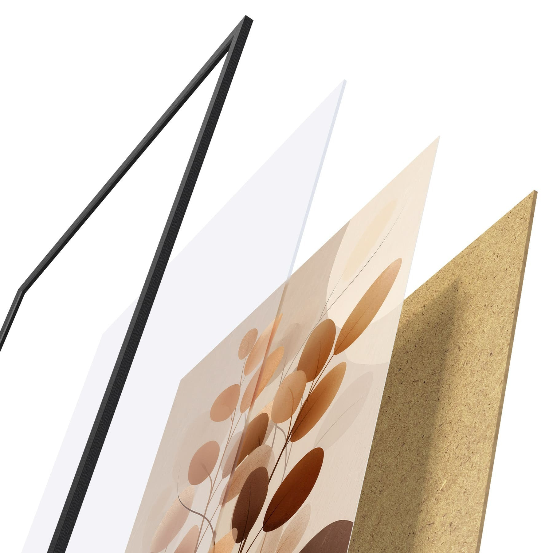 Le poster se compose d'un cadre, d'un plexiglas, d'une image imprimée et d'un support en aggloméré. Le poster peut être immédiatement accroché au mur grâce aux fixations au dos.