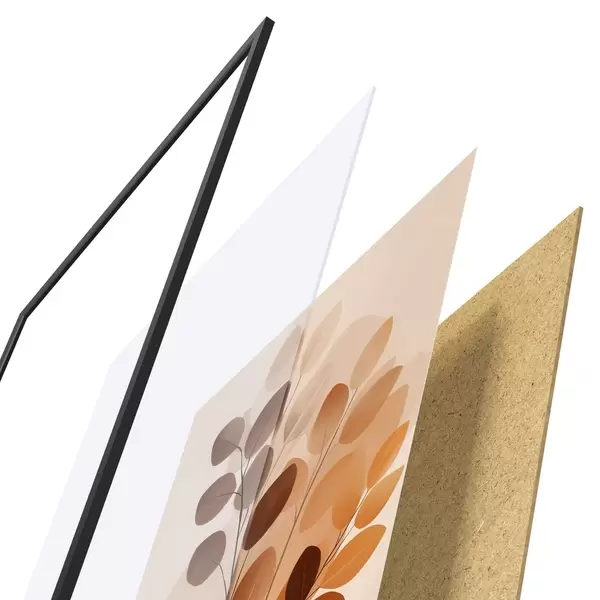Le poster se compose d'un cadre, d'un plexiglas, d'une image imprimée et d'un support en aggloméré. Le poster peut être immédiatement accroché au mur grâce aux fixations au dos.