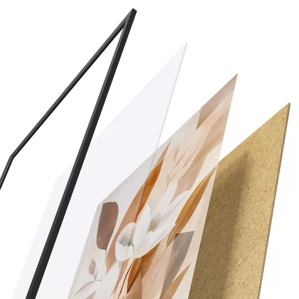 Le poster se compose d'un cadre, d'un plexiglas, d'une image imprimée et d'un support en aggloméré. Le poster peut être immédiatement accroché au mur grâce aux fixations au dos.
