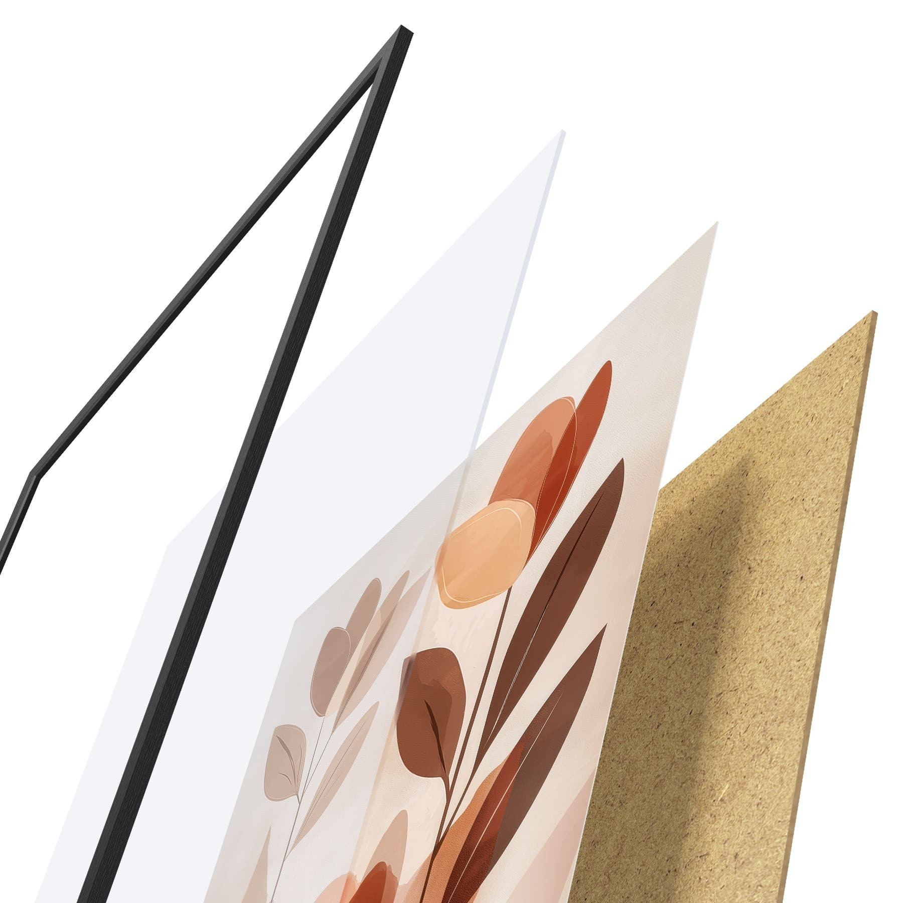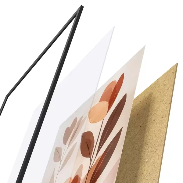 Le poster se compose d'un cadre, d'un plexiglas, d'une image imprimée et d'un support en aggloméré. Le poster peut être immédiatement accroché au mur grâce aux fixations au dos.