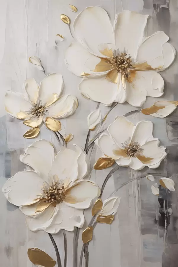 Affiche Des fleurs blanches rehaussées de touches jaunes sur un fond texturé f48721
