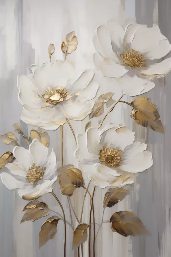 Affiche Des fleurs blanches rehaussées de touches jaunes sur un fond texturé f48722
