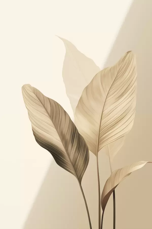Affiche Grandes feuilles tropicales dans des tons de beige et de marron, sur fond clair Non f48726
