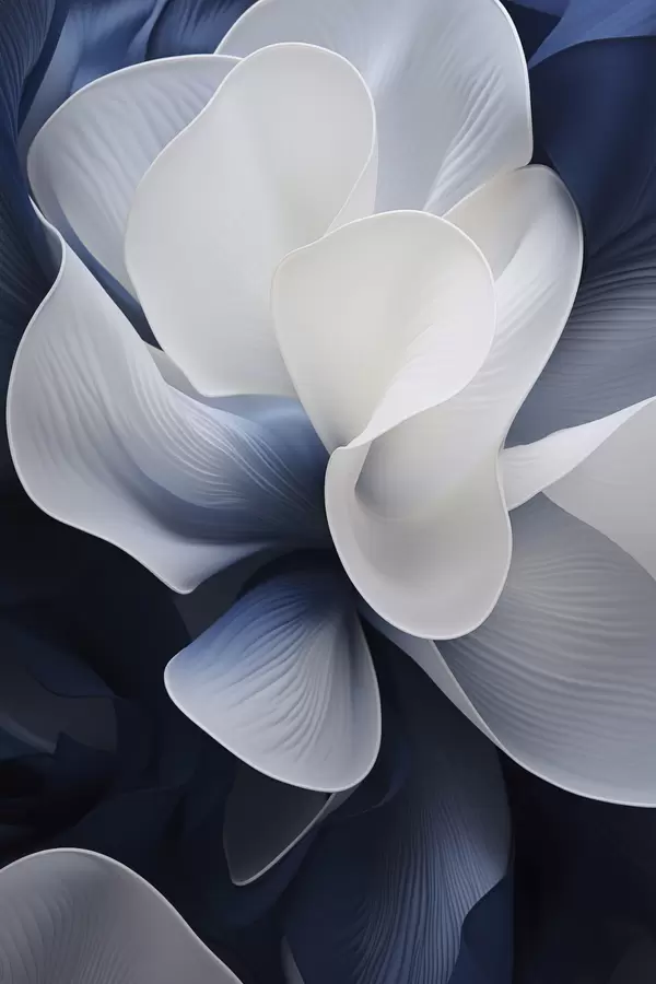 Affiche Pétales de fleurs abstraites bleues et blanches sur fond sombre f48732