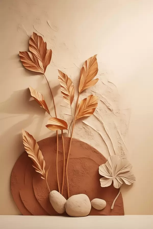 Affiche Une œuvre minimaliste composée de fleurs séchées et d'herbe de la pampa, sur un fond texturé Non f48740