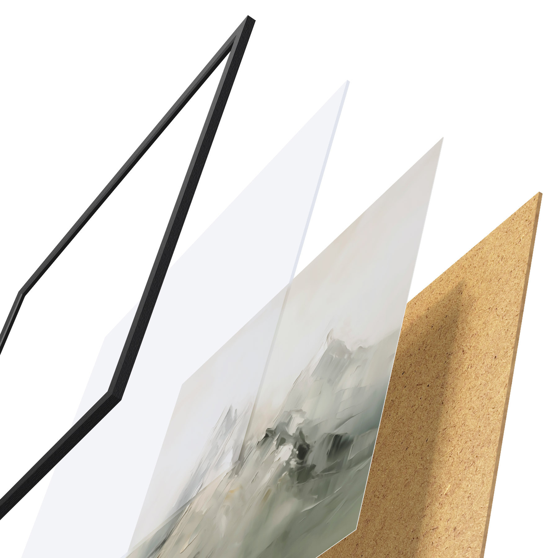 Le poster se compose d'un cadre, d'un plexiglas, d'une image imprimée et d'un support en aggloméré. Le poster peut être immédiatement accroché au mur grâce aux fixations au dos.