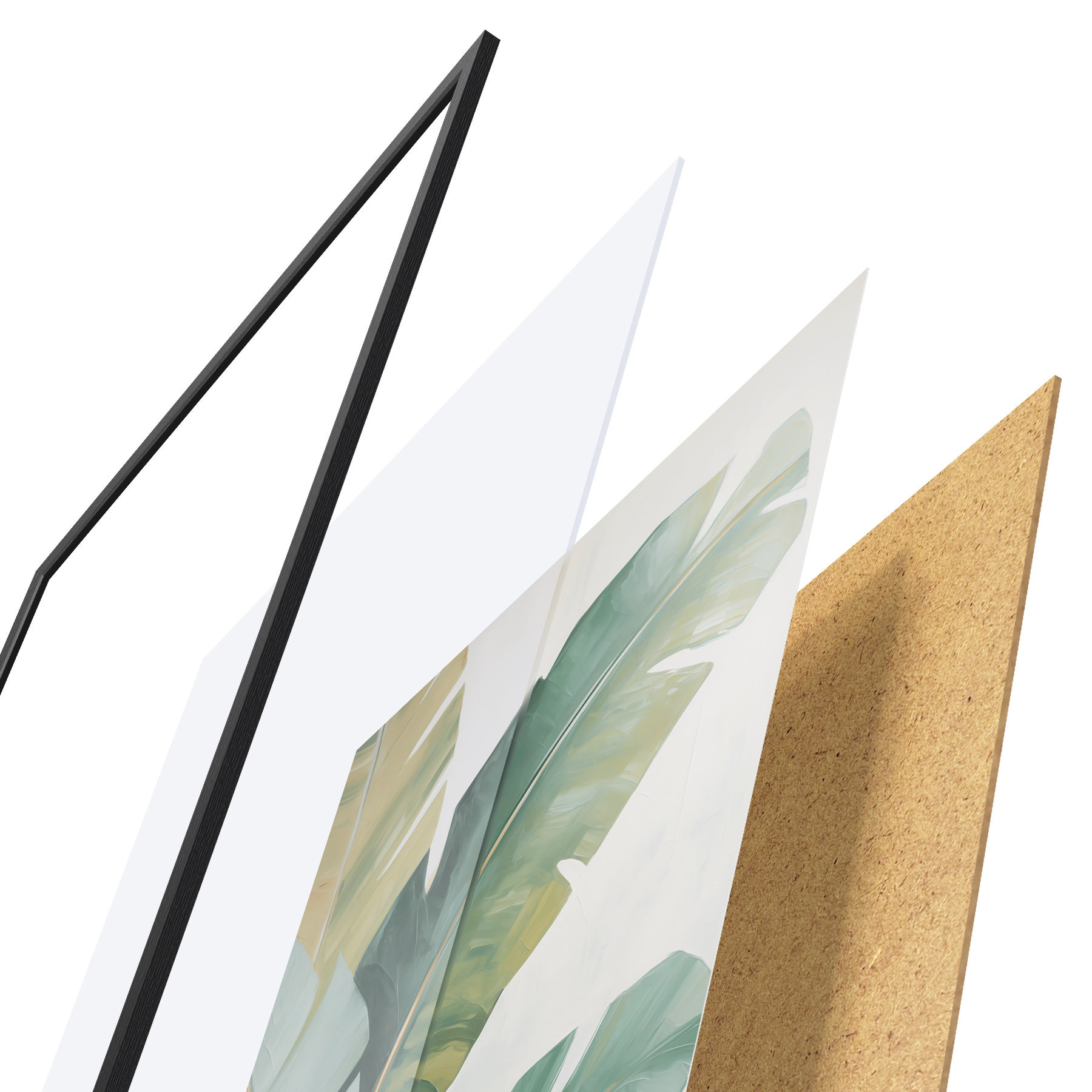 Le poster se compose d'un cadre, d'un plexiglas, d'une image imprimée et d'un support en aggloméré. Le poster peut être immédiatement accroché au mur grâce aux fixations au dos.