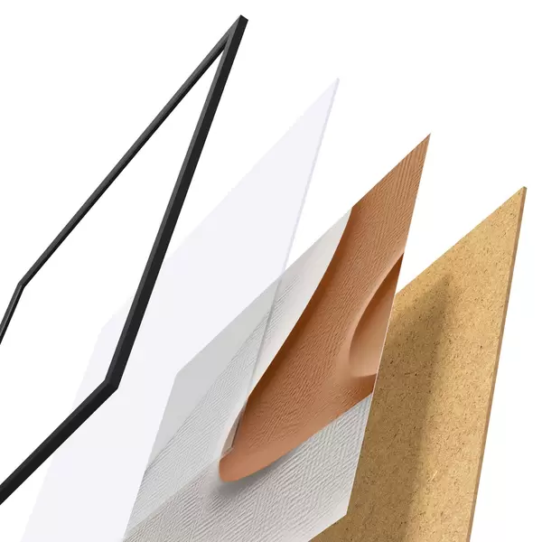 Le poster se compose d'un cadre, d'un plexiglas, d'une image imprimée et d'un support en aggloméré. Le poster peut être immédiatement accroché au mur grâce aux fixations au dos.