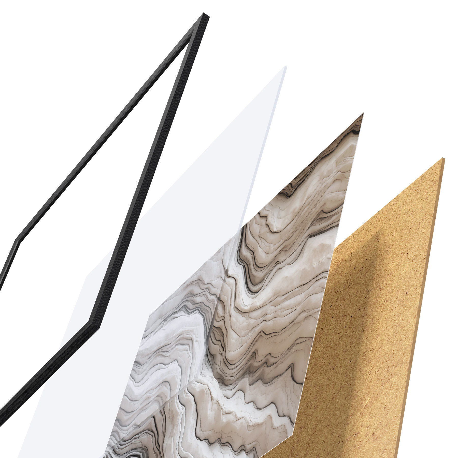 Le poster se compose d'un cadre, d'un plexiglas, d'une image imprimée et d'un support en aggloméré. Le poster peut être immédiatement accroché au mur grâce aux fixations au dos.