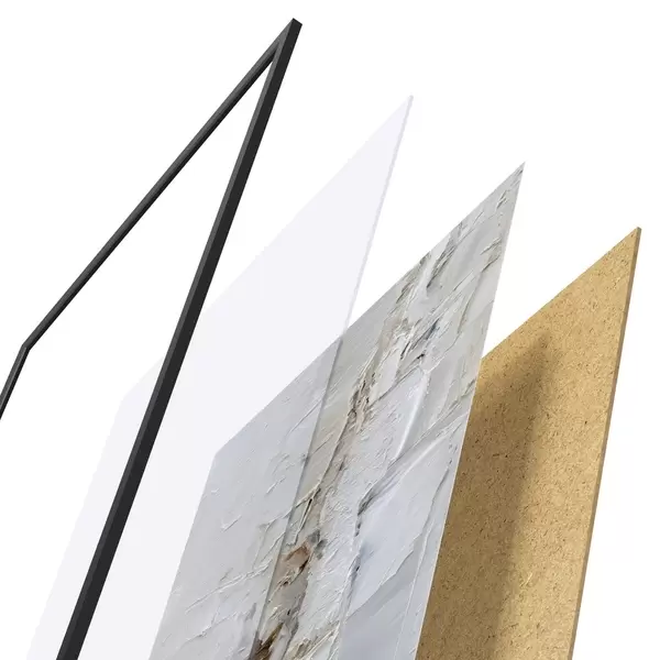 Le poster se compose d'un cadre, d'un plexiglas, d'une image imprimée et d'un support en aggloméré. Le poster peut être immédiatement accroché au mur grâce aux fixations au dos.