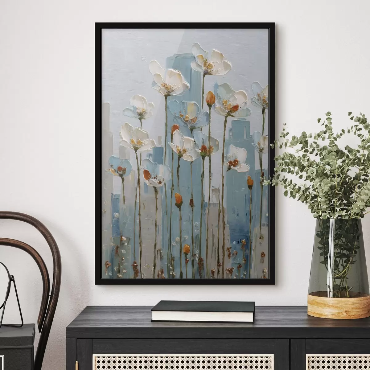 Affiche des fleurs sur fond urbain, dans le style de la peinture à l'huile Non f48785